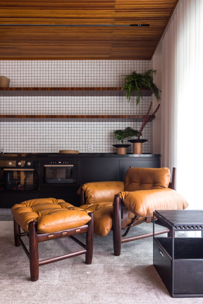 O mobiliário escolhido busca um equilíbrio entre o clássico e o contemporâneo. O tema comum que une todas as peças é o fato de que todas são assinadas por grandes designers brasileiros e representam de alguma forma a produção nacional. A seleção também levou em conta a preocupação com o conforto.