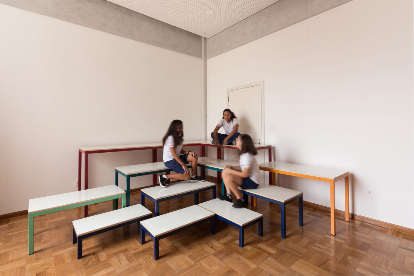 As intervenções no Colégio Santa Marcelina de Belo Horizonte surgiram a partir da demanda do núcleo de inovação pedagógica de criar novos espaços para apoiar as dinâmicas de ensino do Colégio.